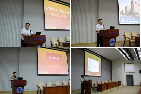 9月10日,化学与材料科学学院在微尺度国家实验室东三报告厅召开2015级研究生新生入学教育大会。学院执行院长杨金龙教授、分党委书记葛学武教授、副院长侯中怀教授、徐铜文教授、罗毅教授、各系党总支书记、班主任和学院2015级全体研究生500多人参加了会议。会议由副院长徐铜文教授主持。