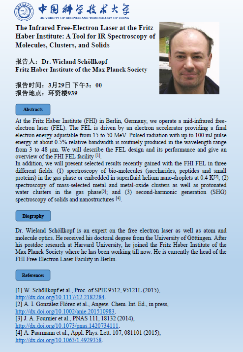 3月29日学术报告—Dr. Wieland Schöllkopf (Fritz Haber Institute of the Max Planck Society)