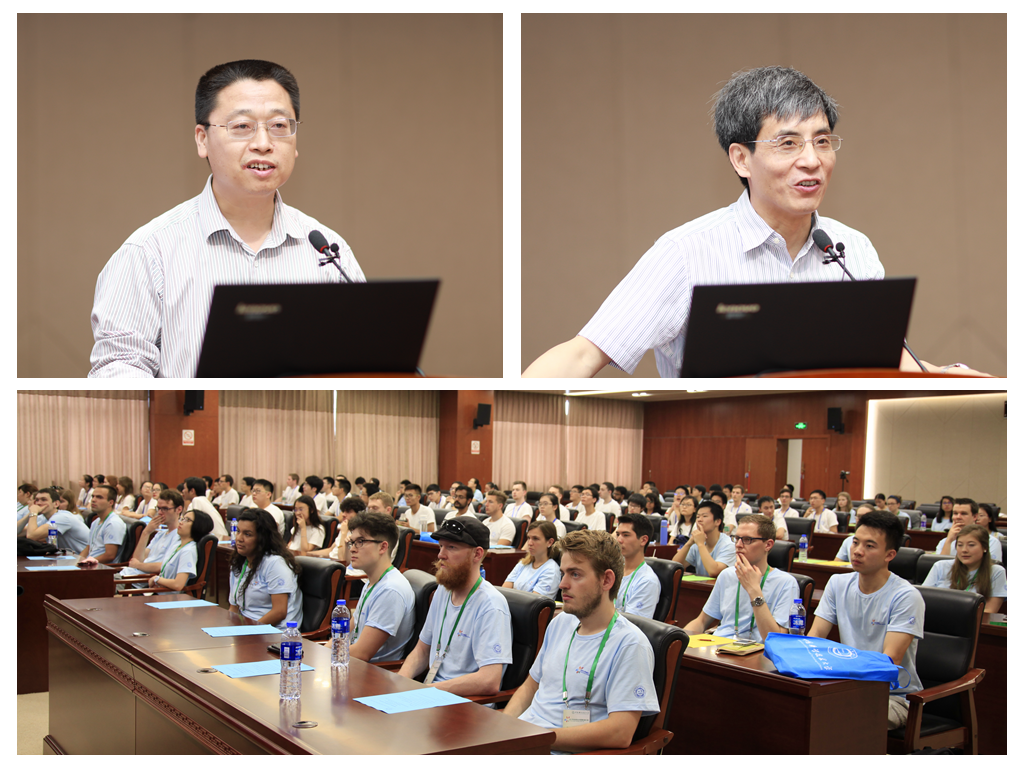 侯中怀部长致欢迎词,正如中国的古话“有朋自远方来,不亦乐乎”,他对来自世界各地的大学生们参加本次夏令营表示热烈欢迎并一一介绍了到场的嘉宾。他指出这五年来,未来科学家国际夏令营的举办,使得海外120多位共同追求科学梦想的年轻人汇聚在科大、汇聚在安徽合肥。随后播放的《科大映像》《合肥色彩》《锦绣安徽客迎天下》等宣传片,更进一步拉近了全球各地的营员与扎根于安徽合肥的科大的距离。宣传片后,陈初升副校长致欢迎词,他指出中国科大具有“小而精”的本科办学传统和一流的基础科学研究成果,近年来,我校在量子通讯等领域取得突破性进展。他非常高兴科大能够为这一批对科学饱含热情、朝气蓬勃的全球青年提供一个共同交流、互相学习的平台。
