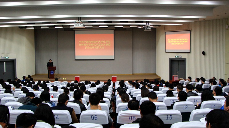 10月18日下午,中共中国科学技术大学化学系总支部委员会党员大会在中科大东区理化大楼东三报告厅召开。化学与材料科学学院党委副书记闫立峰、化学物理系党总支书记李群祥、材料科学与工程系党总支书记刘伟丰、高分子科学与工程系党总支书记何卫东出席会议,会议由化学系党总支书记虞正亮同志主持,化学系党总支全体党员参加了大会。