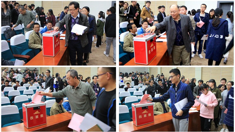 在接下来的会议中,通过表决通过换届选举办法、总监票人和监票人名单、总计票人和计票人名单,并介绍候选人产生过程、选举人进行投票、计票、监票、唱票宣布投票结果,产生了新一届化学系党总支委员会成员,分别为:虞正亮、罗时玮、邵利民、盛国平、付明臣。在庄严的国际歌声中,化学系党总支委员会换届选举党员大会圆满闭幕。