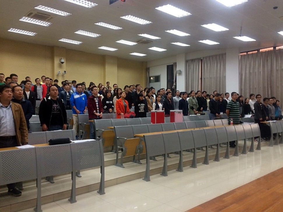 大会在庄严的国歌声中拉开序幕。首先,由总支书记刘伟丰老师向大会报告党员参加情况,应到正式党员123名,实到正式党员112名,符合换届改选的有关规定。随后,按照材料科学与工程系党总支换届选举会议议程,刘伟丰书记代表上一届系党总支作工作报告。报告回顾了三年来,材料科学与工程系党总支在化学院党委的统一部署下,在加强党支部建设、加强党员教育和培养、完成上级党组织安排专项工作以及团学和对全系师生服务情况等方面进行阐述,对目前仍存在的问题进行深入剖析,并提出了下一阶段的工作思路:组织党员和全系师生深入学习十九大精神;持续深入推进“两学一做”学习教育常态化;进一步加强基层支部组织建设;进一步加强青年学生的思想教育工作和努力改善系教职工文体活动等方面。