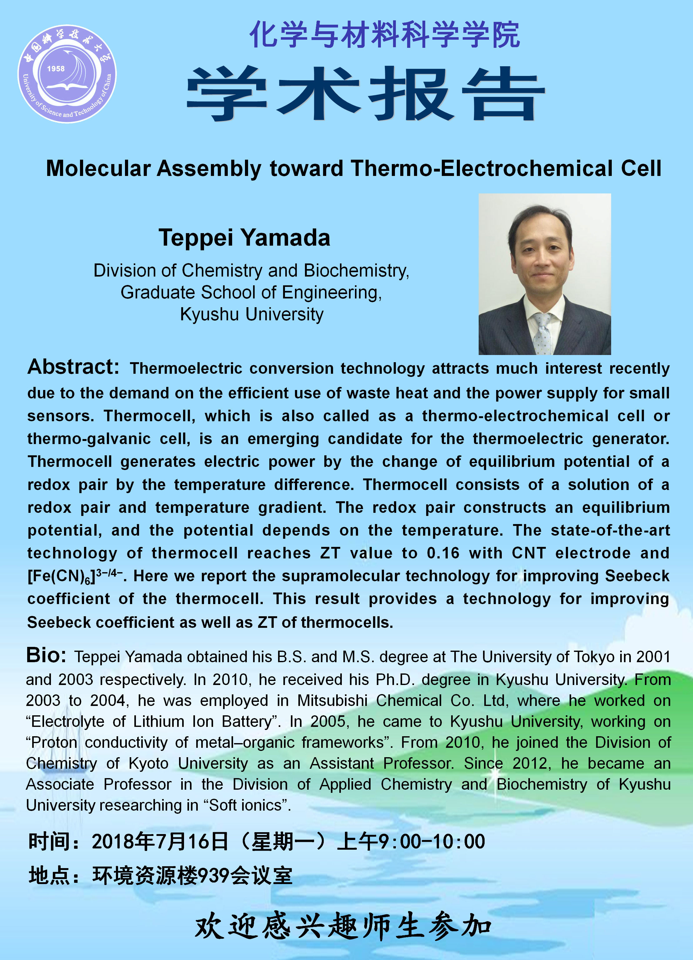 7月16日学术报告—— Teppei Yamada 副教授(Kyushu University)