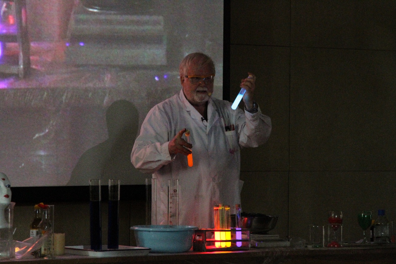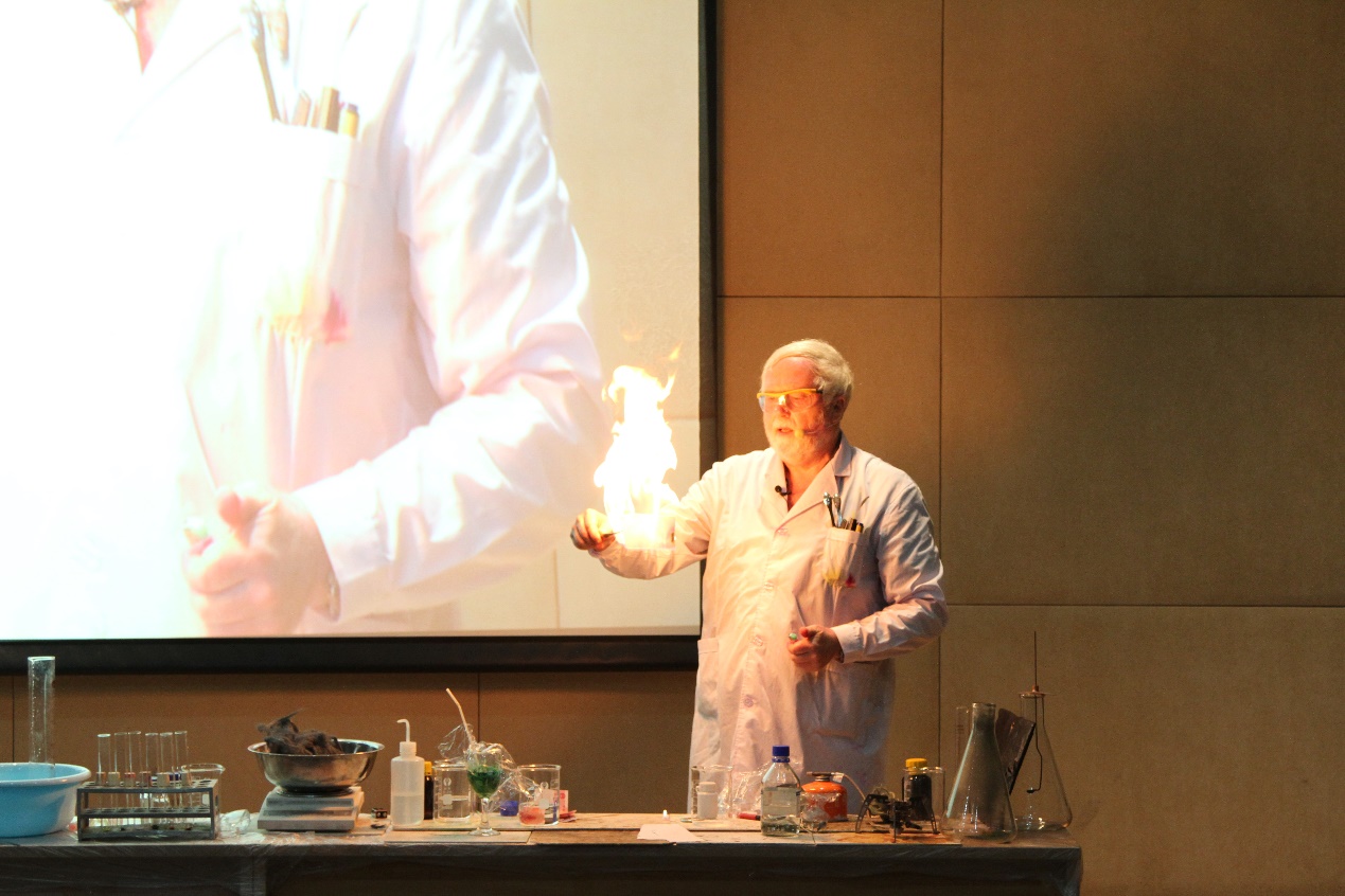 5月18日,英国皇家化学会北京地区分会主席、知名科普专家戴伟教授再次来到科大,在环资楼报告厅举办了化学秀。在这场秀中,我们看到了徒手点燃钢丝绒,冰沙燃烧的“魔法”,了解了停电的时候灯泡发光、头像瞬间不翼而飞的“秘密”,让《流浪地球》中的扣人心弦结局成为现实。这些难以想象的现象都可以通过化学的方法得以实现,本次科学秀通过丰富多彩的化学实验来揭示什么是化学反应,告诉大家化学不仅限于烧杯和实验室,它就在我们身边。