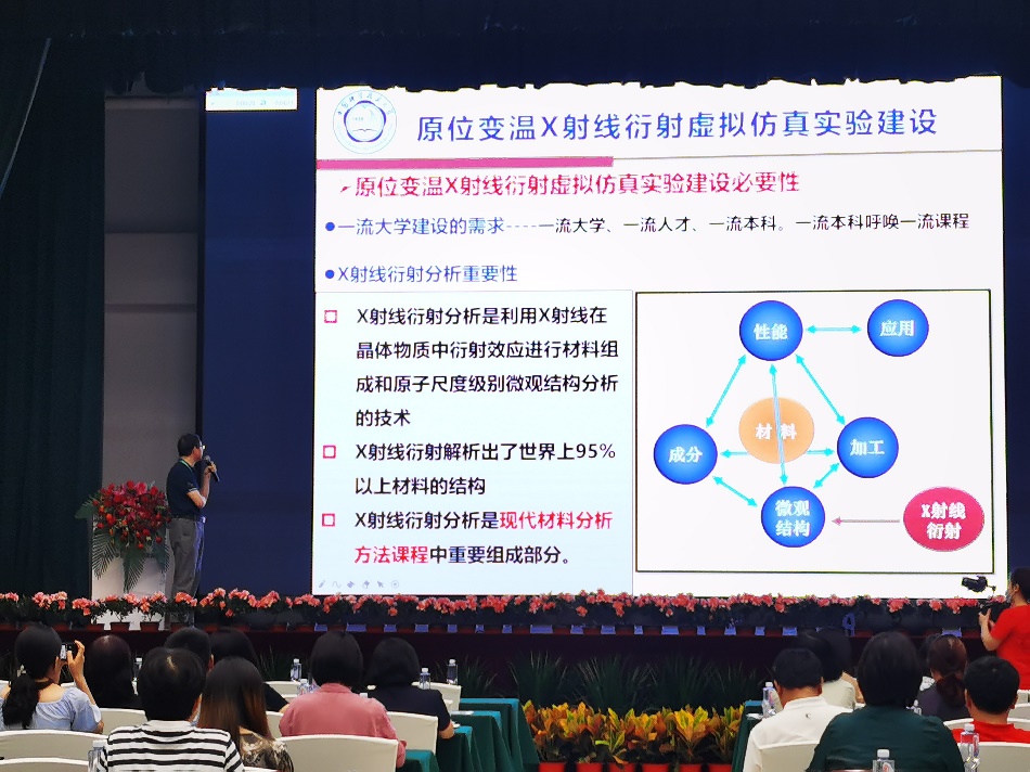 我院张万群老师以“国家一流本科虚拟仿真实验课程建设——原位变温X射线衍射虚拟仿真实验建设”为题做了报告,介绍了该虚拟仿真实验教学项目的建设工作。该项目解决了因原位变温衍射仪设备昂贵、测试时间长和教学难点——X射线衍射先进的精确分析技术相关内容而限制的实际实验教学问题。同时采用虚实结合,自主、合作、探究、互动教学方法,使学生能在短时间内掌握得到精准的测试数据和精确计算的方法,培养学生利用大型仪器解决复杂问题的综合能力和高级思维。