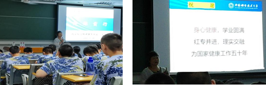 随后学院心理咨询二级工作站负责人刘红老师用精美的PPT为同学们讲解了常见心理健康问题以及保持心理健康的方法。PPT主题为“伴你前行”,体现出学校心理中心随时与同学相伴,作学生心理健康的坚强后盾的工作态度。并且,刘老师详细讲解了如何前去学校心理中心进行心理咨询,保证一直能“伴你前行”。然后,刘老师从身体上的适应、学习上的适应、人际交往关系的适应三个方面引导我们要主动接受并适应变化,迎接属于自己丰富又精彩的大学生活。 “不要误会了黑色的夜,它只是让你更能看见繁星的璀璨。”诚如斯,刘老师用这一堂课,诠释了这句话的真意:保持健康的心理,相信时雪会洗去尘垢,艳阳能冲破阴翳,你终会遇到爱和期望!