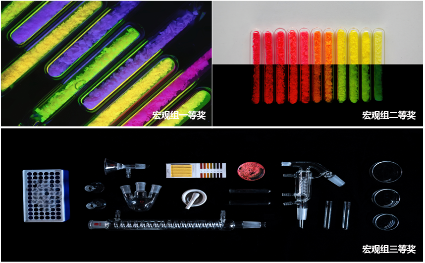 宏观组总票数计270票。郑志敏同学的作品《多色室温磷光发光材料》视觉效果突出且应用价值高,可实现高亮度、长时间、多色发光,运用于信息加密和防伪、生物成像等领域,荣获一等奖。另外,郝格同学的作品《千变万化,美遇科大》以及刘蝶同学的作品《井然有序》分别荣获得二、三等奖。化学之美,随处可见,正是这些繁忙的实验日常促进了国家科技进步、民族时代变迁!