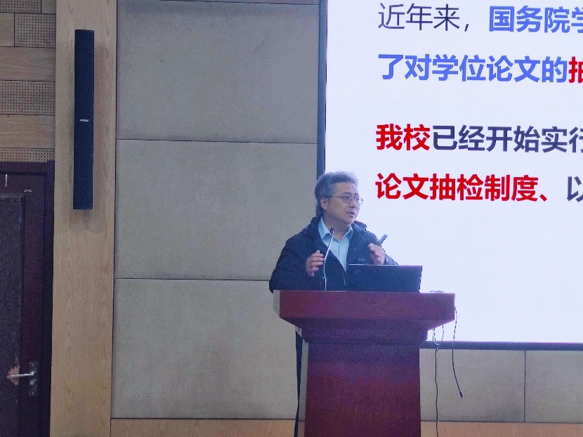 学院党委副书记周小东老师结合教育部对高校毕业生学位论文抽查工作的相关精神,指出了当前学位论文中存在的共性问题与薄弱环节,强调了规范写作、严谨治学的重要性。周小东表示,学院始终坚持以学生为中心,希望通过系列务实举措,切实为学生顺利毕业保驾护航。