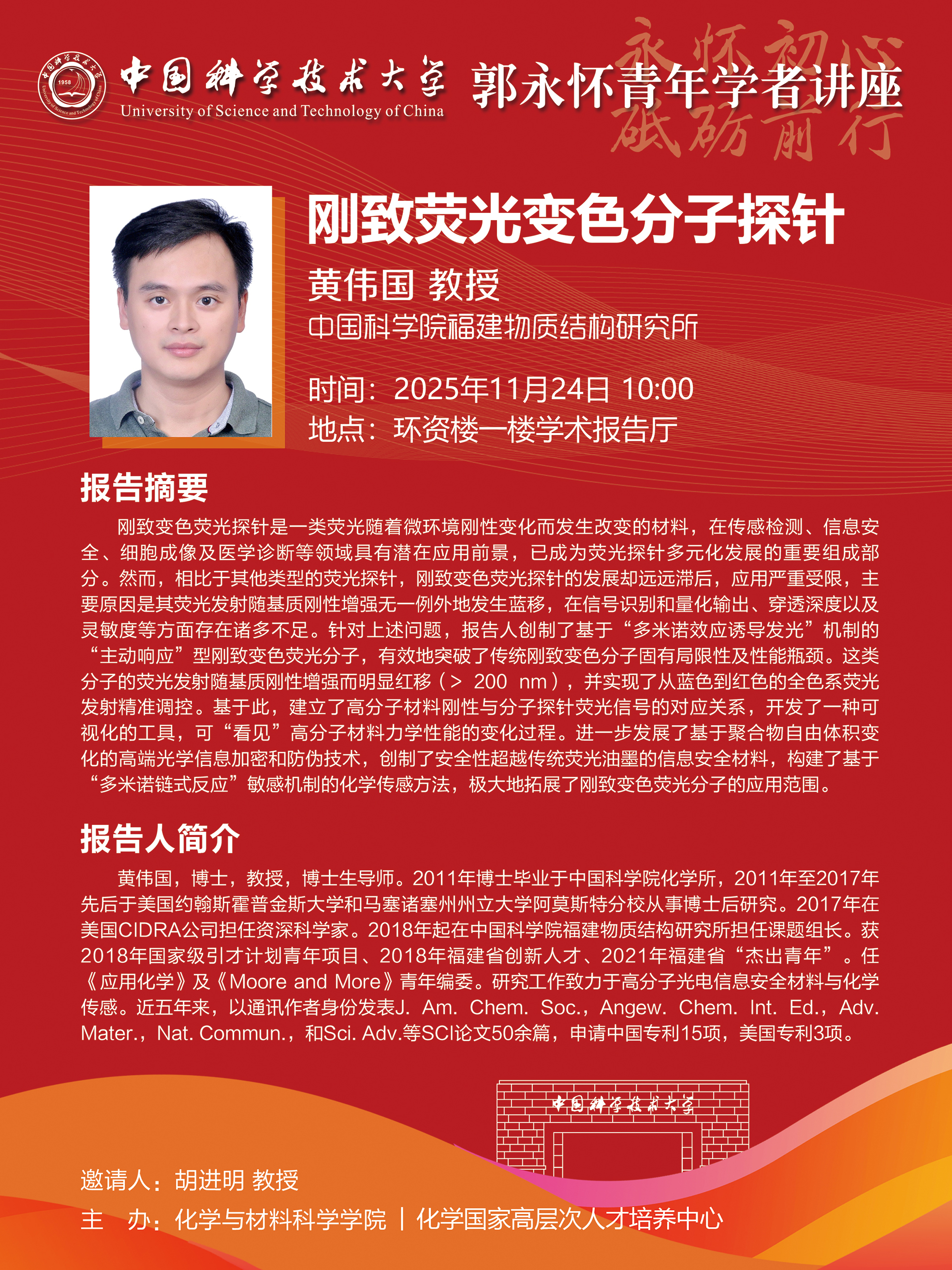 11月24日郭永怀青年学者讲座——黄伟国 教授(中国科学院福建物质结构研究所)