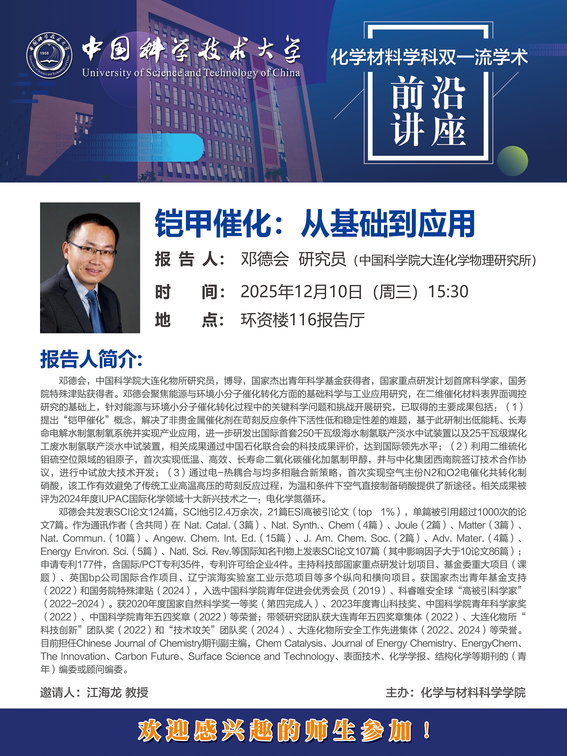 12月10日化学材料学科双一流学术前沿讲座——邓德会 研究员(中国科学院大连化学物理研究所)