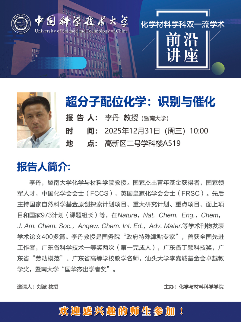 地址:中国合肥市包河区金寨路96号中国科技大学东区化学与材料科学学院 邮编:230026
